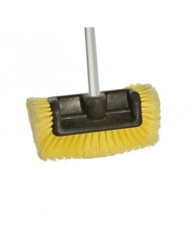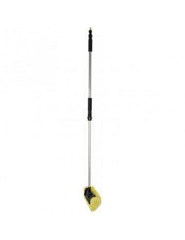 Aluminium wasborstel met rondom op vier plaatsen super zachte borstelharen en hij bevat een telescoopsteel. Hiermee kun je de plekken goed schoonmaken waar je normaal nooit goed bij komt. De wasborstel heeft een waterslang aansluiting en kan aan gesloten worden op het bekende Gardena systeem.