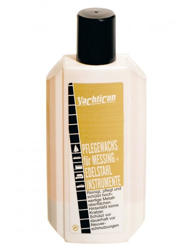 De onderhoudswas van Yachticon beschermd en maakt alle messing en rvs oppervlakken (bijvoorbeeld scheepsinstrumenten / scheepslampen) van hoge kwaliteit goed schoon! Het verwijdert lichte roest en oxidatie plekken en laat daarbij een hoge glans plus een beschermende laag achter. De onderhoudswas gaat tevens waterdruppels tegen.