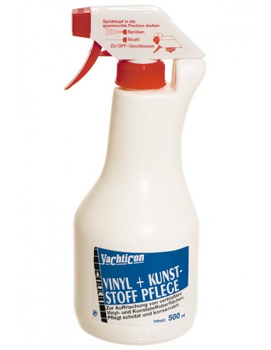 Dit vinyl en kunststof onderhoudsmiddel van Yachticon verzorgd en beschermd nieuw vinyl en kunststof. Tevens laat het oude vinyl en kunststof oppervlaktes weer glanzen en voorkomt stof. Is ook te gebruiken voor kunstleer, rubber, en gelijksoortige oppervlaktes geschikt.