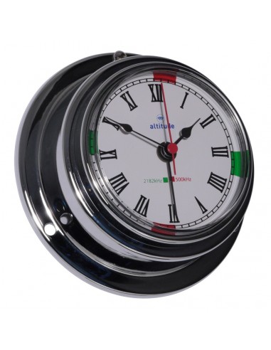 De Altitude quartz klok van is een klok met een strak ontwerp. Hij is gemaakt van hoogwaardig verchroomd messing en voorzien van een acrylglas. De quartz klok bevat radio stilte sectoren en een alarm-functie! Wat handig! Deze klok staat prachtig in een boot of schip, maar is ook geschikt voor in huis.