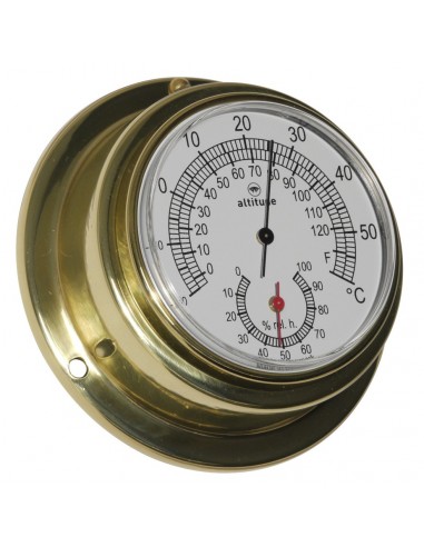 De Altitude thermo en hygometer heeft een strak design met een eenvoudig af te lezen door de duidelijke wijzerplaat afkomstig uit Denemarken. Hij is voorzien van een acrylglas en de behuizing is gemaakt van hoogwaardige kwaliteit messing. De thermo en hygrometer is 'frond loaded' voor een zeer gemakkelijke toegang.