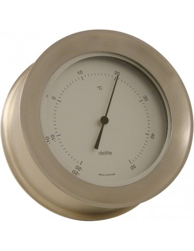 Stijlvolle thermometer afkomstig uit de Zealand serie van het geweldige merk Delite! De thermometer is gemaakt van mat rvs met witte wijzerplaat en het instrument is op te hangen zonder dat de schroeven erna te zien zijn door het handige klik systeem. De thermometer heeft een indeling met Celsius.