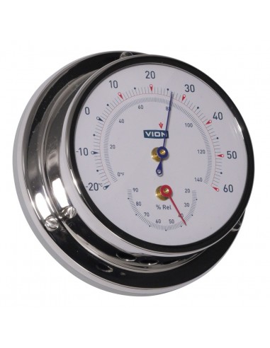 Deze thermometer en hygrometer van het merk Vion heeft een haar hygrometer met synthetische precisie en de nauwkeurigheid van deze meter is ±2,5%. De thermometer / hygrometer heeft een duidelijke witte wijzerplaat en een blauwe en rode aanwijzers. De meter wordt inclusief wandbevestiging geleverd.