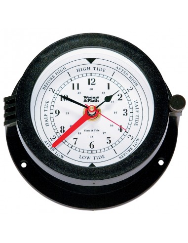 Mooie quartz klok met een getijden uurwerk. De scheepsklok is gemaakt van styreen en is dus spatwaterbestendig. De quartz klok heeft een Arabische wijzerplaat met getijden uurwerk en geeft goed de tijd en het getijde weer! Deze spatwaterbestendige quartz klok komt uit de Bluewater serie van het scheepsinstrumenten merk Weems & Plath.