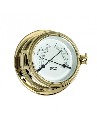 Deze comfortmeter heeft een indeling in Celsius en Fahrenheit op een witte wijzerplaat. De Endurance II 105 thermometer / hygrometer is afkomstig van het merk Weems & Plath en heeft levenslange garantie op de afwerking en beweging. De W&P Endurance thermometer / hygrometer is gemaakt van messing en kan ook buitenshuis worden gebruikt.