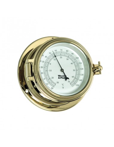 Deze thermometer uit de Endurance II 105 serie van het merk Weems & Plath heeft een indeling met Celsius op een witte wijzerplaat. Deze thermometer is gemaakt van messing en heeft een patrijspoort voor gemakkelijke toegang aan de voorzijde. De Endurance II 105 thermometer heeft een levenslange garantie op de afwerking en beweging.