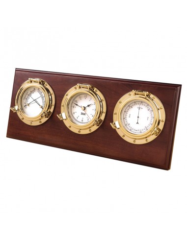 Dit Weems & Plath weerstation bestaat uit een quartz klok, barometer, thermometer en hygrometer! De scheepsinstrumenten zijn gemaakt van koper en de achterplaat is gemaakt van Amerikaans hardhout met mahonie finish. Dit mooie Porthhole weerstation is echt een plaatje en is zoals gezegd afkomstig van het merk Weems & Plath (W&P).