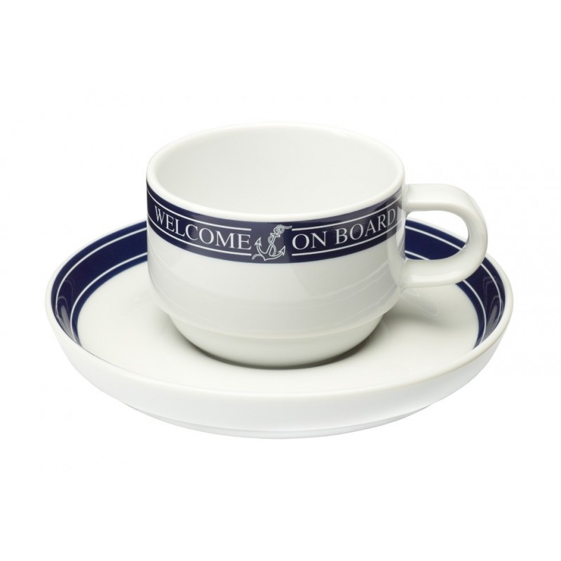 Prachtig koffiekopje uit de scheepsservies serie van Welcome On Board. Deze is gemaakt van porselein en heeft een mooie tekst opdruk op de zijkant met 'Welcome On Board'. Het koffiekopje wordt zonder schotel geleverd, deze is apart te bestellen.