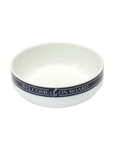 Ronde schaal uit de serie van Welcome On Board. Deze schaal is bijvoorbeeld ideaal voor toetjes, nootjes of andere kleine hapjes. De schaal is gemaakt van porselein en heeft een luxe tekstopdruk. Tevens is deze schaal ook te bestellen in andere maten.