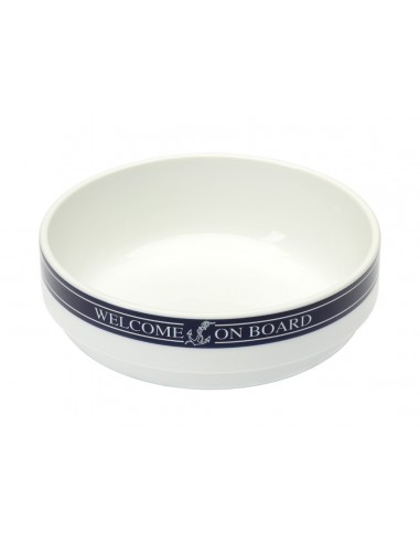 Ronde schaal uit de serie van Welcome On Board. Deze schaal is bijvoorbeeld ideaal voor salades, nootjes of andere kleine hapjes. De schaal is gemaakt van porselein en heeft een luxe tekstopdruk. Tevens is deze schaal ook te bestellen in andere maten.