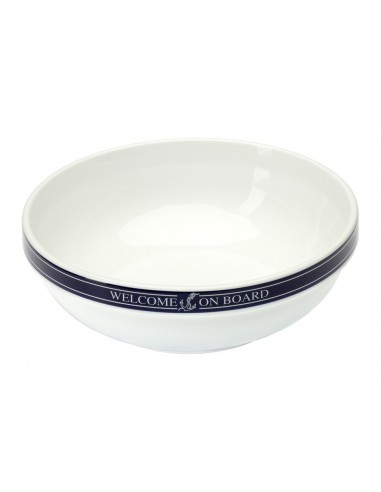 Ronde schaal uit de serie van Welcome On Board. Deze schaal is ideaal voor groentes, aardappeltjes, salades aan tafel. De schaal is gemaakt van porselein en heeft een luxe tekstopdruk. Tevens is deze schaal ook te bestellen in andere maten.