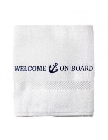 Dit badlaken heeft een mooie geborduurde tekst met 'Welcome On Board' en is gemaakt van 100% katoen met een kwaliteit van wel 500 gr/m². Dit badlaken behoord tot het merk Welcome On Board, is in drie verschillende maten en in twee verschillende kleuren te bestellen. Dit witte badlaken is toch onmisbaar na het douchen of dagje strand!