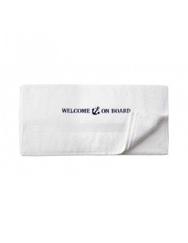 Mooie witte handdoek gemaakt van 100% katoen en heeft een kwaliteit van 500 gr/m², daardoor is de handdoek heerlijk zacht! Deze handdoek heeft een mooie nautische geborduurde tekst en is van het merk stijlvolle merk Welcome On Board. De handdoek is in twee verschillende kleuren en drie verschillende maten verkrijgbaar.